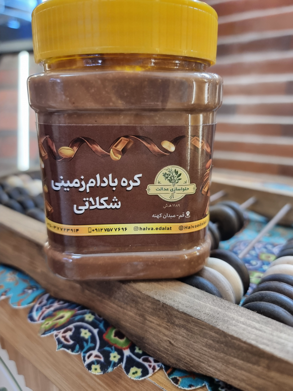 کره بادام زمینی شکلاتی عدالت تهیه شده از بادام درجه ۱ آستانه اشرفیه به همراه شکلات ۷۰ درصد، بدون نمک و فاقد شکر افزوده میباشد.